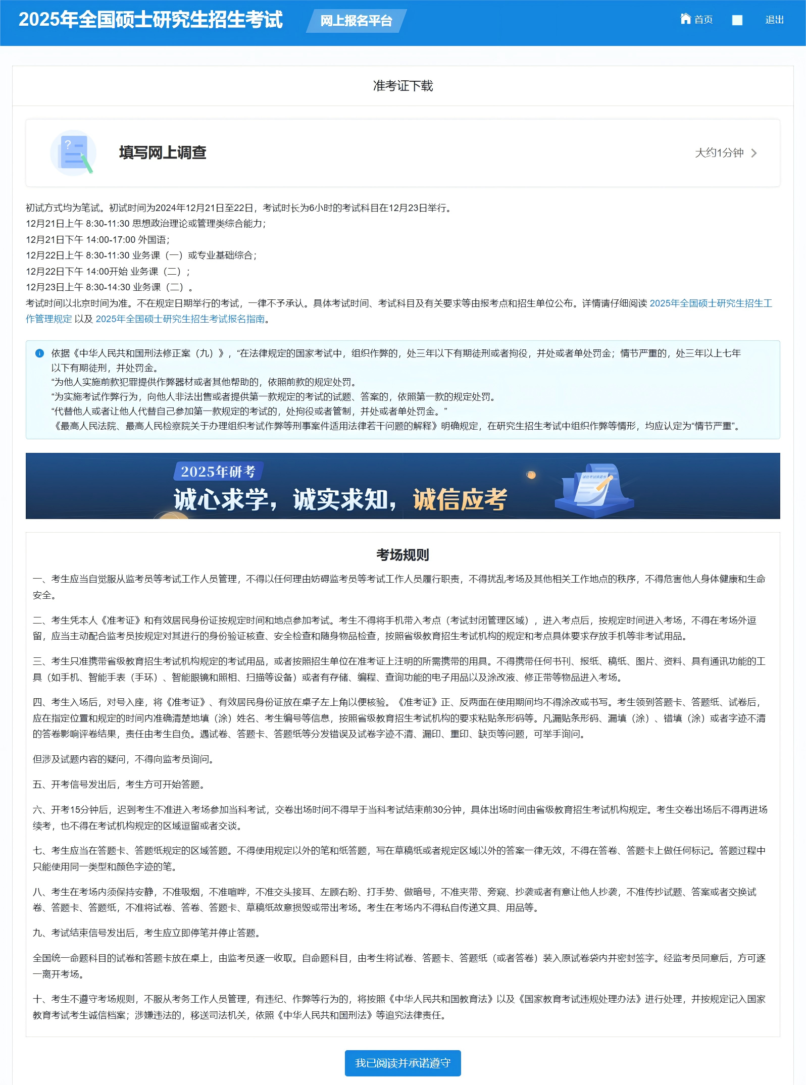 进入研招网报平台首页后,你将看到初试时间提醒、考场规则等内容,这个页面上的提示要认真阅读!