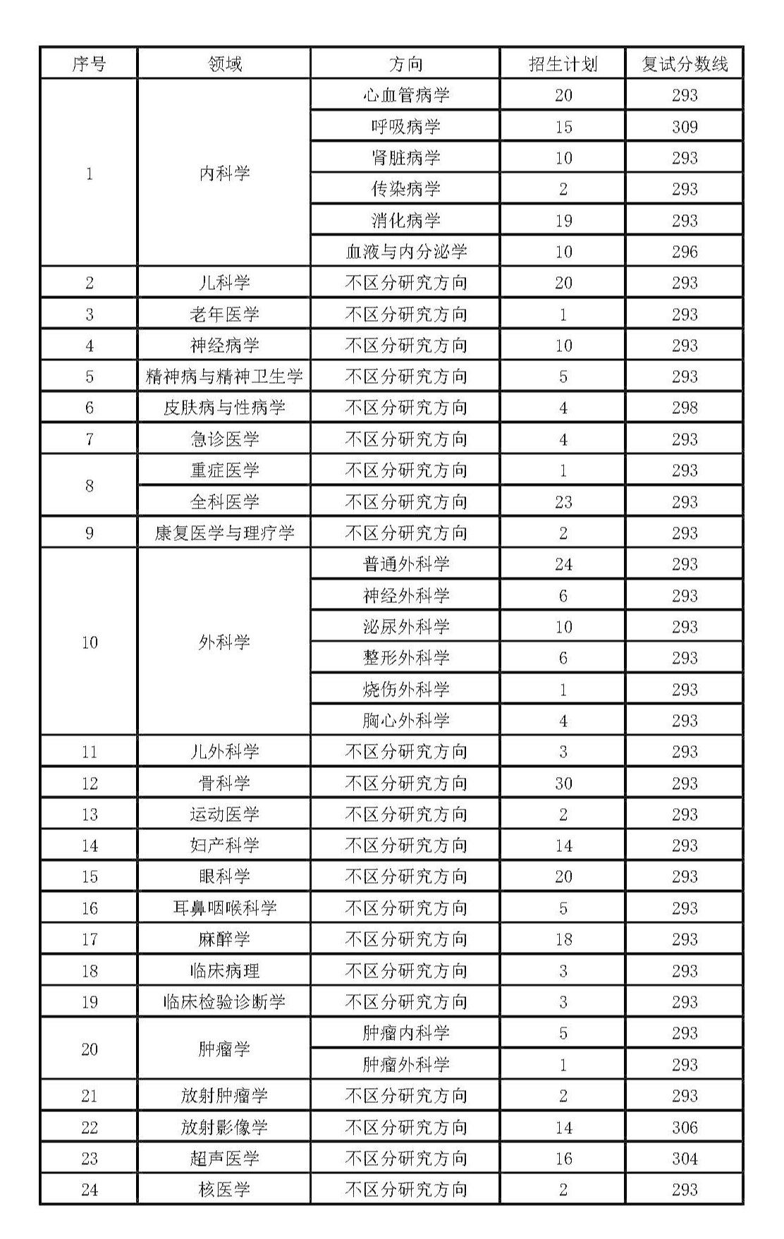 2025年临床医学各专业领域方向招生计划及一志愿复试分数线